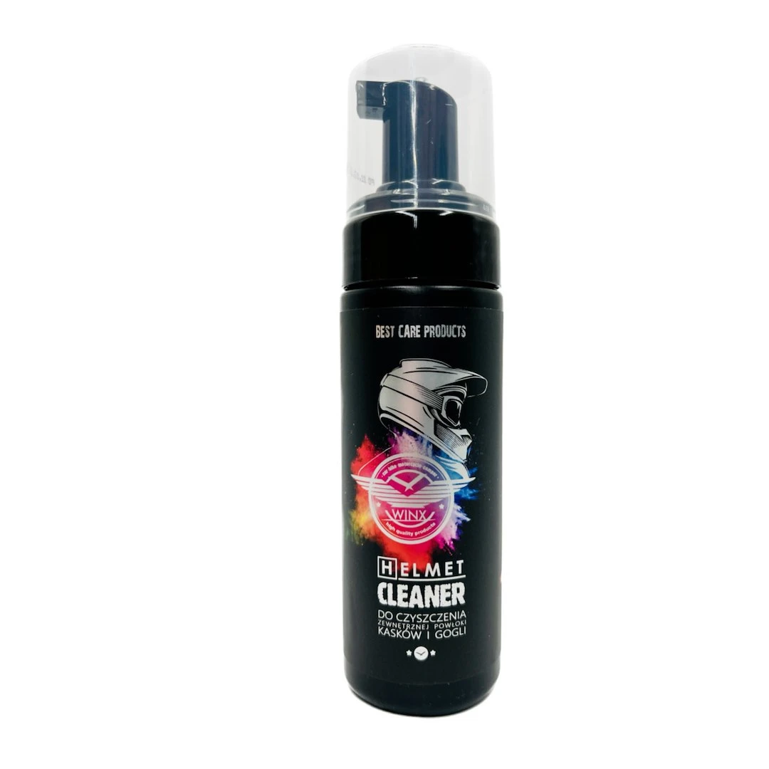 HELMET CLEANER WINXPianka do czyszczenia kasku 150ml WinxPianka do czyszczenia każdego rodzaju kasków motocyklowych i nie tylko. Wydajny preparat starczający na wielokrotne użycie. Idealna do wyczyszczenia powierzchni i naniesienia wosków lub preparatów zabezpieczających. Płyn w butelce z pompką pianotwórczą, 150 ml.Najważniejsze cechy:- Skutecznie usuwa zabrudzenia.- Wygodne w użyciu opakowanie.- Działa szybko, nie zostawia smug i zacieków.SPOSÓB UŻYCIA:1. Środek gotowy do użycia.2. Nanieść niewielką ilość produktu na czyszczoną powierzchnię.3. Wytrzeć do sucha szmatką.GPRS:Środki ostrożności:Łatwopalna ciecz i pary. Działa drażniąco na oczy.Przechowywać z dala od źródeł ciepła, gorących powierzchni, źródeł iskrzenia, otwartego ognia i innych źródeł zapłonu. Nie palić. Stosować rękawice ochronne/ odzież ochronną/ ochronę oczu/ ochronę twarzy. W PRZYPADKU DOSTANIA SIĘ DO OCZU: Ostrożnie płukać wodą przez kilka minut. Wyjąć soczewki kontaktowe jeżeli są i można je łatwo usunąć. Nadal płukać. W przypadku utrzymania się działania drażniącego na oczy zgłosić się pod opiekę lekarza. Przechowywać pojemnik szczelnie zamknięty. Zawartość/ pojemnik usuwać do odpowiednio oznakowanych pojemników na odpady zgodnie z krajowymi przepisami.ZAWIERA:niejonowe środki powierzchniowo czynne(<5%)