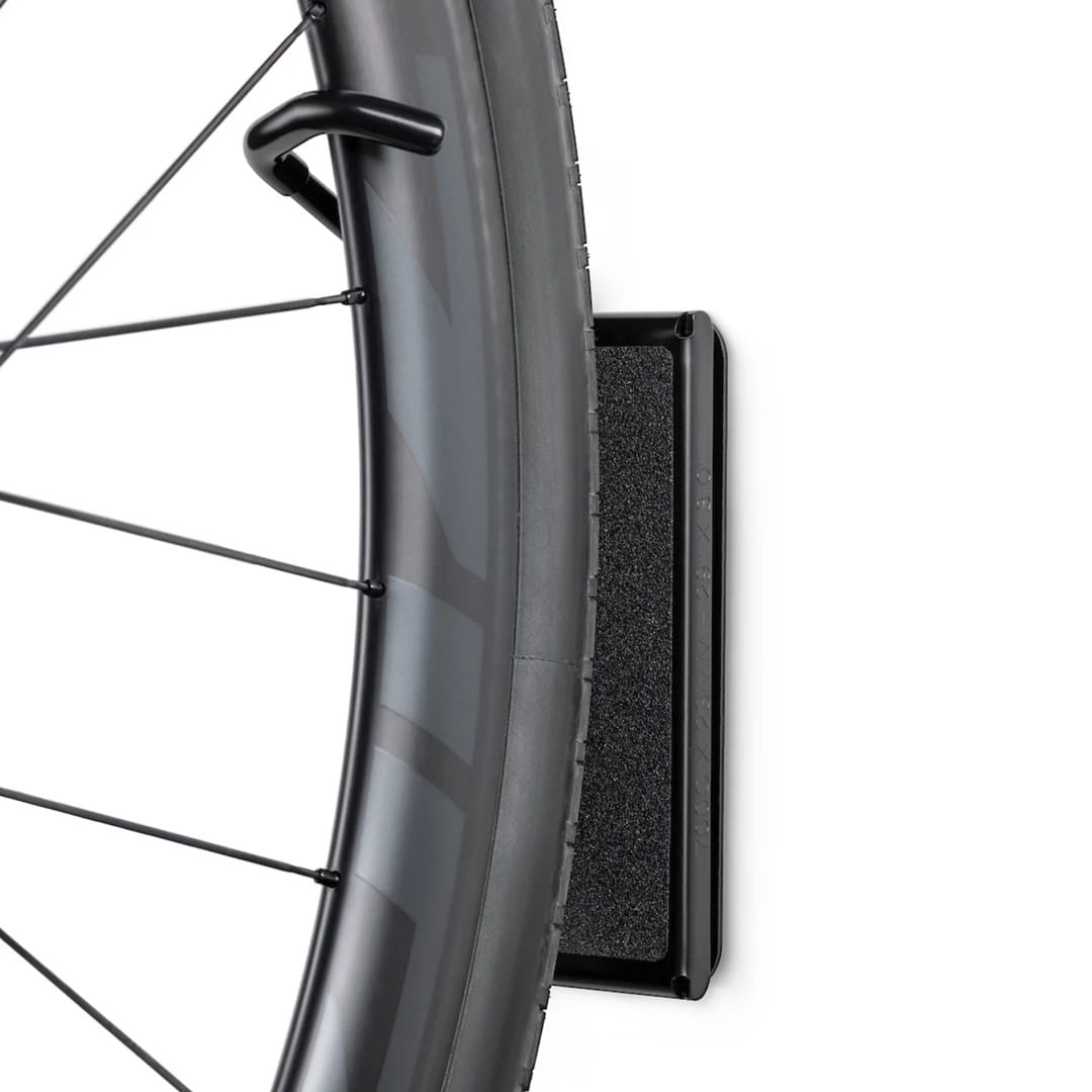 - opatentowana konstrukcja zawiasu umożliwia obrót roweru w lewo lub w prawo aby spoczywał płasko wzdłuż ściany