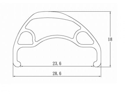 Obręcz do kół 29”. Wykonana z obrabianego termicznie stopu aluminium 6061H-T6. Nitowana. Dwuścienna. Kapslowana. 3 komory. Kompatybilna z oponami Tubeless. Do stosowania wyłącznie z hamulcami tarczowymi. Otwór na wentyl FV. 32 otwory. ERD 602,4 mm. Waga: 535 g.