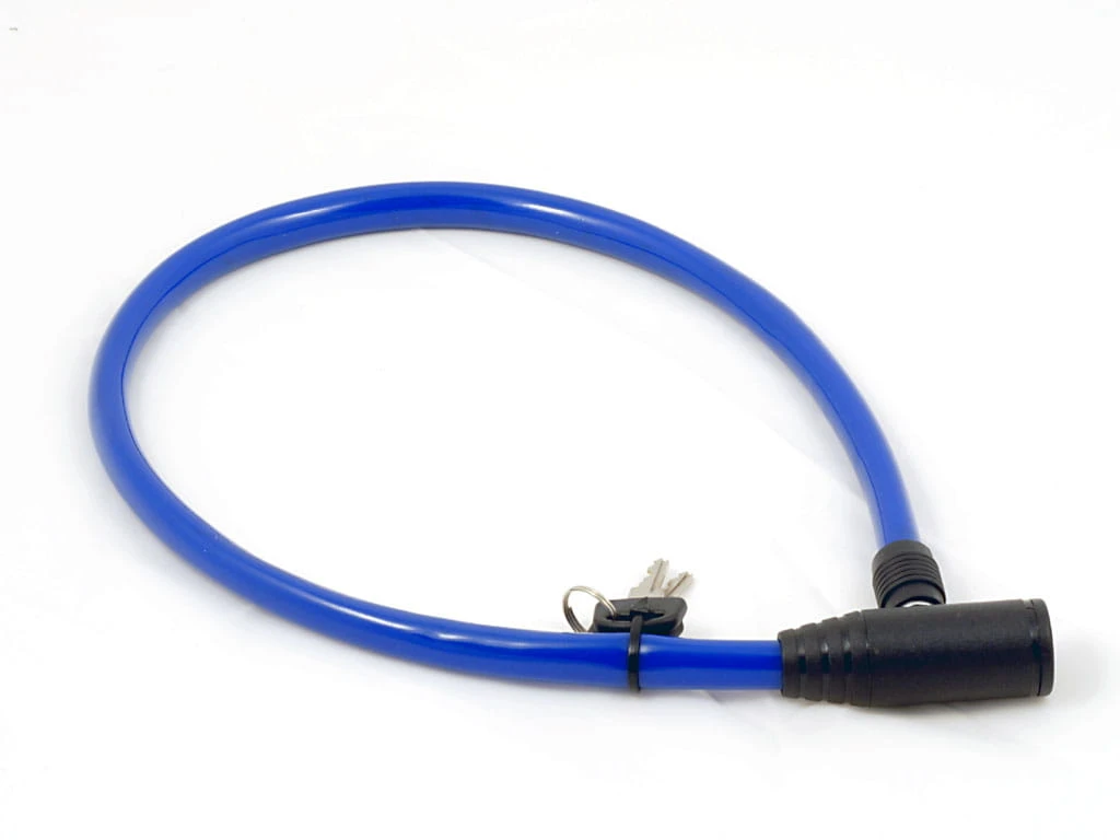 Linka z zamkiem na kluczyk. W komplecie 2 klucze. Średnica linki: 6mm. Długość: 60cm. Waga: 104g. Kolory: czarna, niebieska.