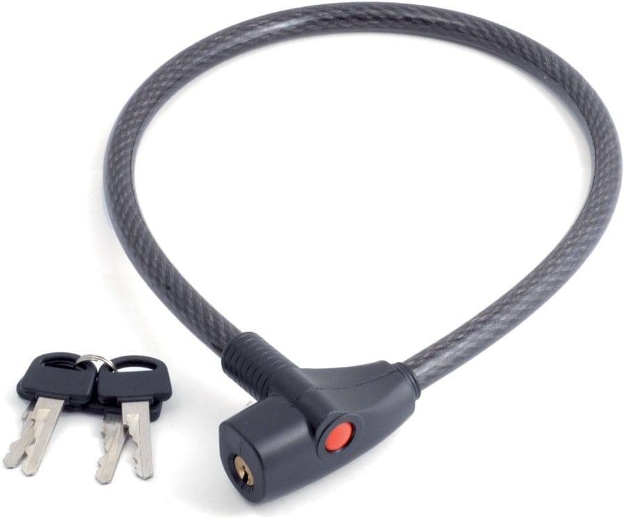 Linka z zamkiem na kluczyk. W komplecie 4 klucze. Średnica linki: 12mm. Długość: 65cm. Waga: 210g. Kolor: czarna.