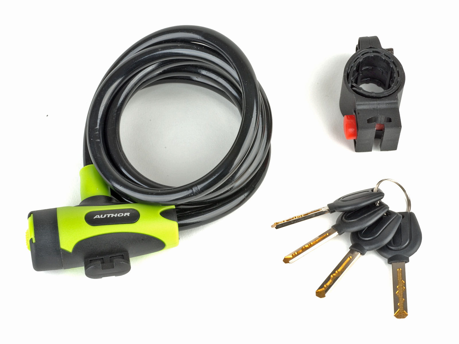 Zapięcie rowerowe linkowe spiralne z uchwytem mocującym. W komplecie 4 klucze. Średnica linki: 10 mm. Długość: 150 cm. Waga: 301 g. Kolory: czarno-zielony, czarno-różowy.