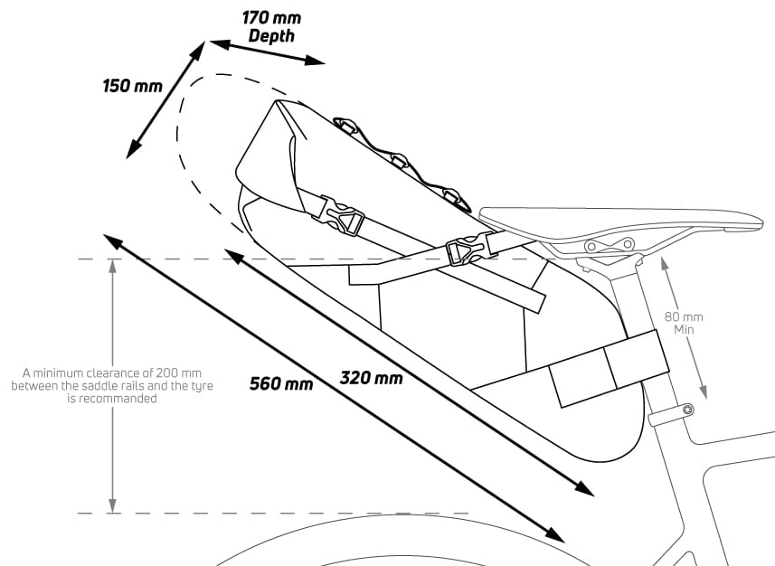 Torba na siodło zaprojektowana do przewożenia dużej ilości przedmiotów bez potrzeby używania tylnego bagażnika. Wyposażona w kilka wytrzymałych samoprzylepnych pasków i materiał zapobiegający