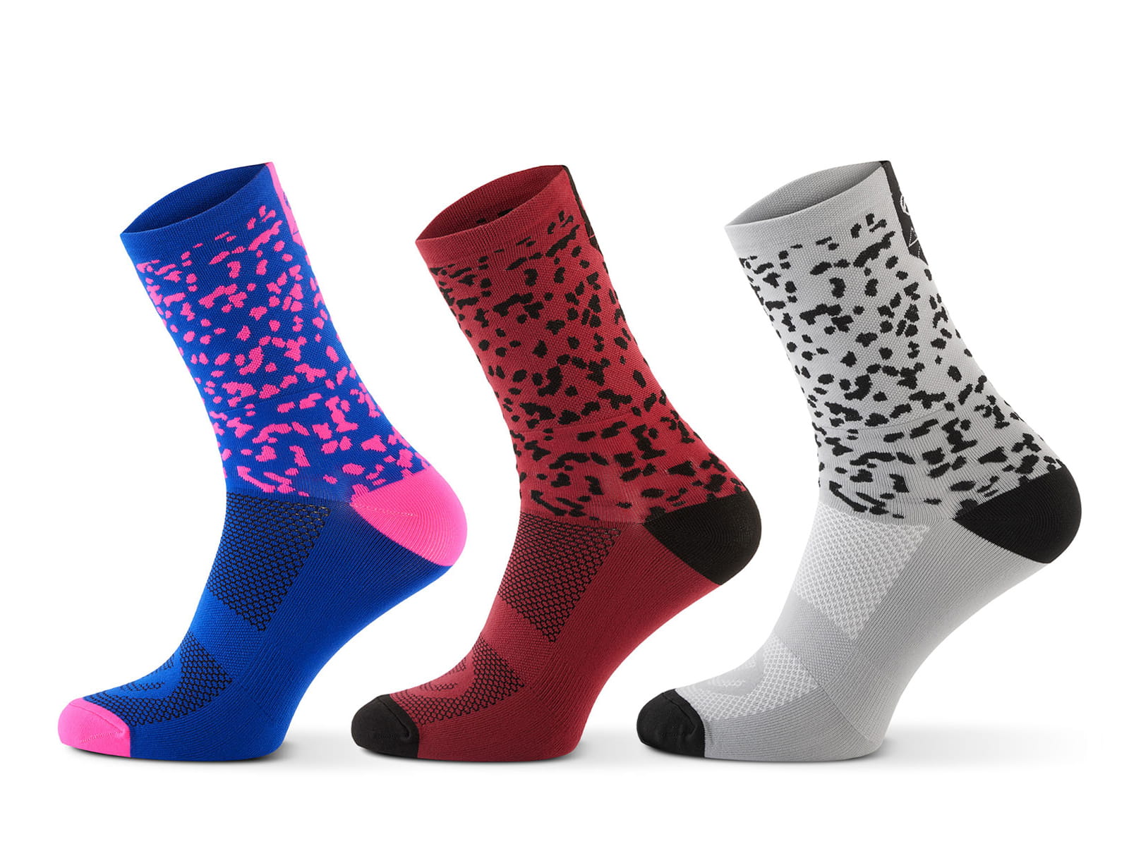 Zestaw skarpetek kolarskich wykonanych z tkaniny Prolen, która bardzo dobrze odprowadza wilgoć i chroni stopy przed nadmierną potliwością oraz bakteriami. Specjalny splot włókien w okolicach grzbietu stopy zapewnia bardzo dobrą wentylację, a jednocześnie delikatnie amortyzuje podeszwę. Idealnie przylegają do stopy nie powodując otarć. Ściągacz pewnie utrzymuje skarpetkę na miejscu. Specjalny splot w okolicy ścięgna Achillesa zapobiega nadmiernemu uciskowi. Bardzo szybko schną i nie rozciągają się, zachowując swój fason przez długi czas.