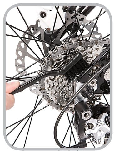 Zestaw szczotek opracowany w oparciu o doświadczenia i zalecenia mechaników rowerowych. Zawiera 5 różnych szczotek, umożliwiających łatwe i dokładne usuwanie błota i brudu z ramy i wszystkich elementów roweru, również z miejsc trudno dostępnych. Zestaw zawiera ponadto przejrzystą instrukcję, wskazującą do czego najlepiej stosować poszczególne szczotki.